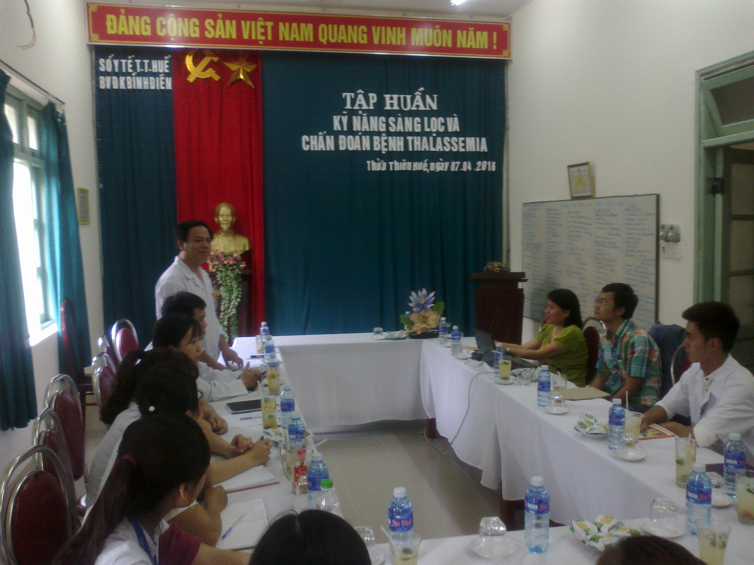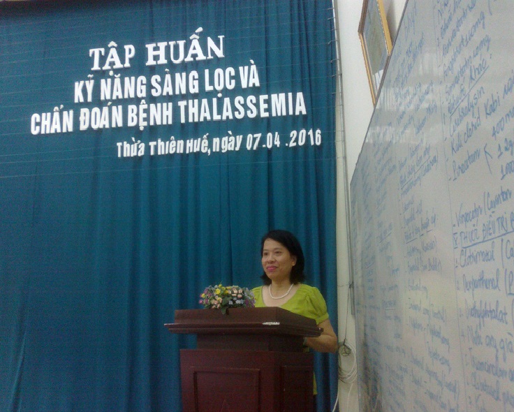 Chiều ngày 07 tháng 4 năm 2016, tại Bệnh viện đa khoa Bình Điền, Bác sĩ CKII Phan Thị Thùy Hoa, Phó giám đốc Trung tâm Huyết học - Truyền máu miền Trung cùng các bác sĩ, cử nhân Trung tâm đã tổ chức Lớp tập huấn bệnh Thalassemia và kỹ năng sàng lọc bệnh Thalassemia đối với phụ nữ mang thai.
