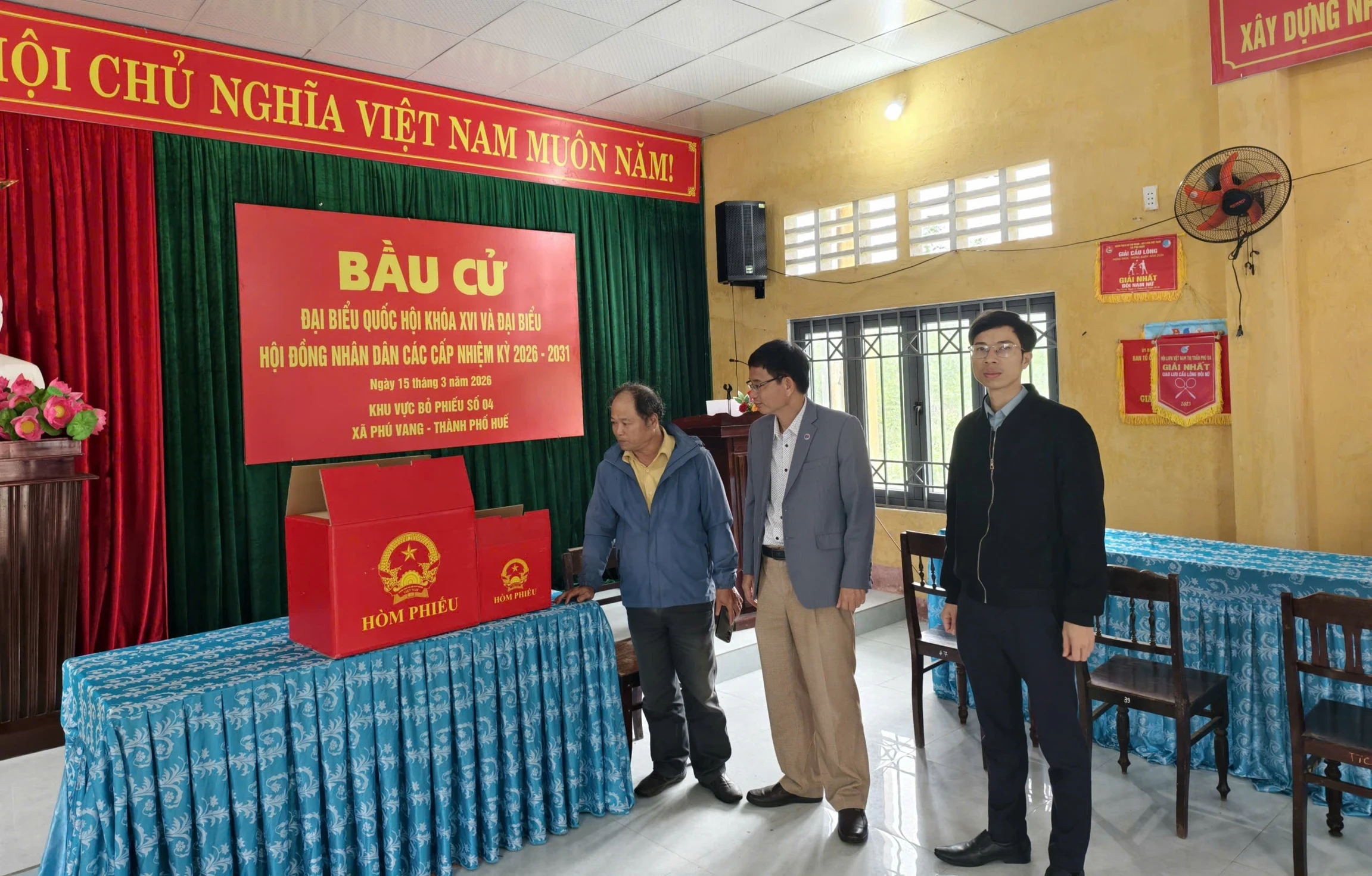 Đoàn công tác của Sở đã đến kiểm tra thực tế tại một số điểm bầu cử trên địa bàn các xã Phú Vang, Phú Vinh và Phú Hồ.