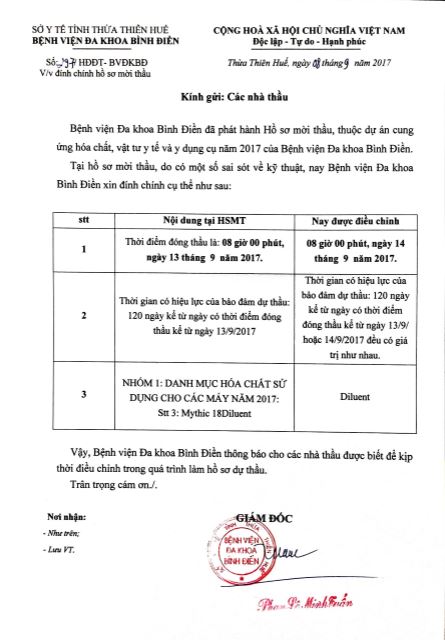 [Thông báo] Đính chính gói thầu cung ứng hoá chất, vật tư y tế và y dụng cụ năm 2017