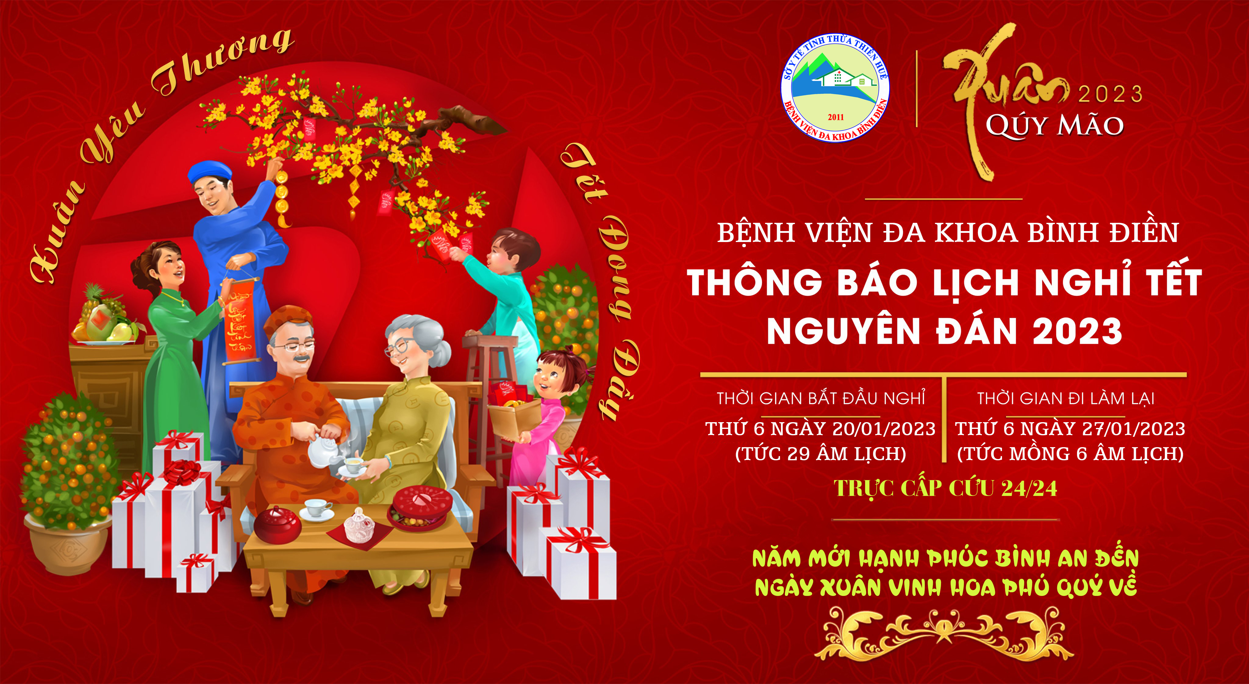 Chào Tết Nguyên Đán Quý Mão 2023, Bệnh viện Đa khoa Bình Điền trân trọng thông báo Lịch nghỉ Tết Nguyên Đán 2023 của bệnh viện như sau: